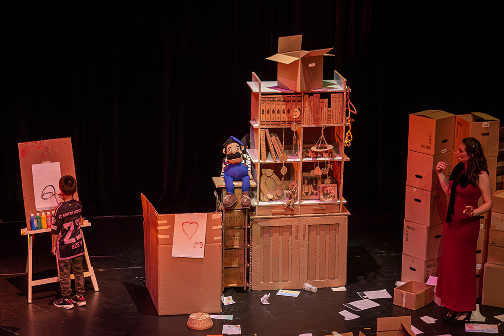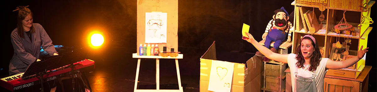 Het verhaal speelt zich af op een magische zolder met een schildersezel, piano en een hoop kartonnen dozen...